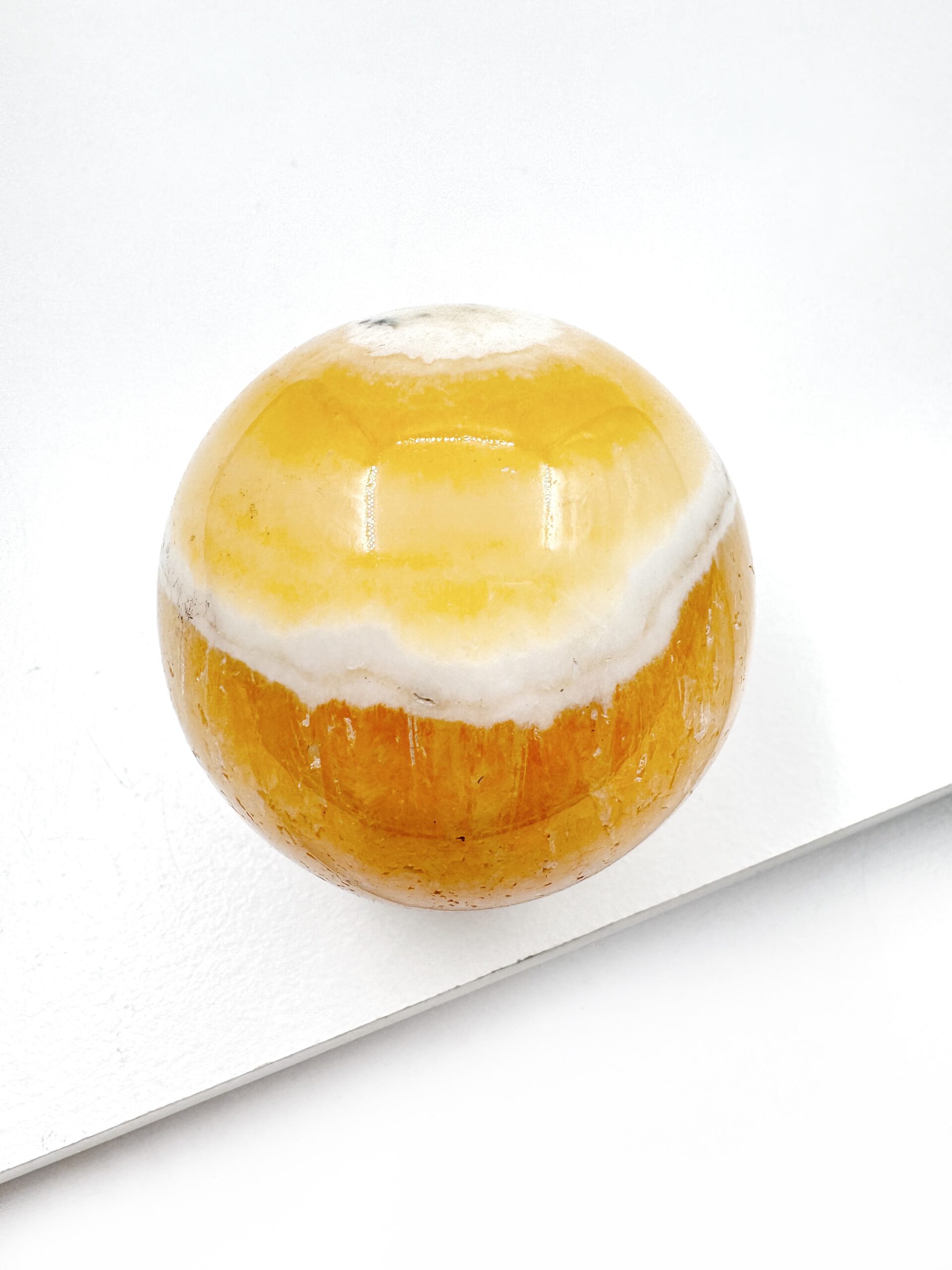 Guld Calcit er en gylden-orange sten. Den kan have hvide, stribede aflejringer, men kan også være fuldstændig ensfarvet. Det er en rigtig god smykkesten, der er nem at arbejde med og som findes i store mængder flere forskellige steder i verden.