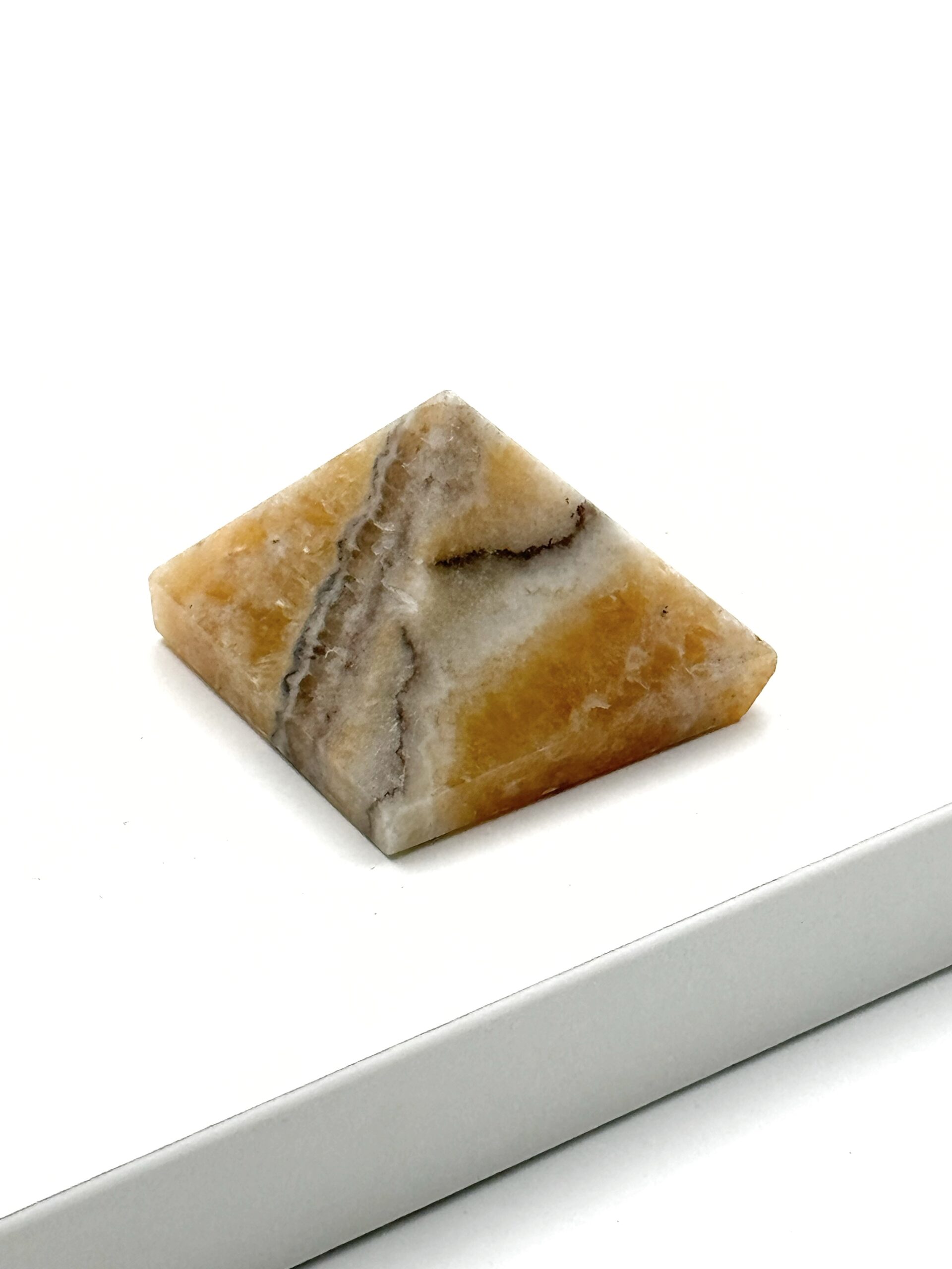 Guld Calcit er en gylden-orange sten. Den kan have hvide, stribede aflejringer, men kan også være fuldstændig ensfarvet. Det er en rigtig god smykkesten, der er nem at arbejde med og som findes i store mængder flere forskellige steder i verden.