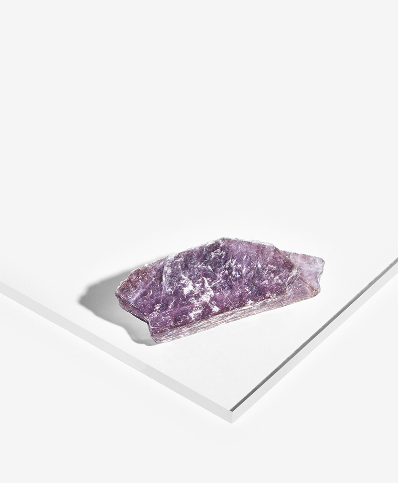 Lepidolit dannes i en plade-struktur, der minder om Mica. I sin rå form fremstår den skinnende lilla, næsten metallisk. I poleret for er den mere mat lilla. Teknisk set er det en blanding en række forskellige stoffer, og den lilla farve kommer fra et højt indhold af Litium. Man udvinder også Litium til industrielt brug fra Lepidolit forekomster. Krystallen er relativt almindelig og kan findes mange steder i verden, primært i USA, Brasilien, den Dominikanske Republik, Tjekkiet og på Madagaskar.