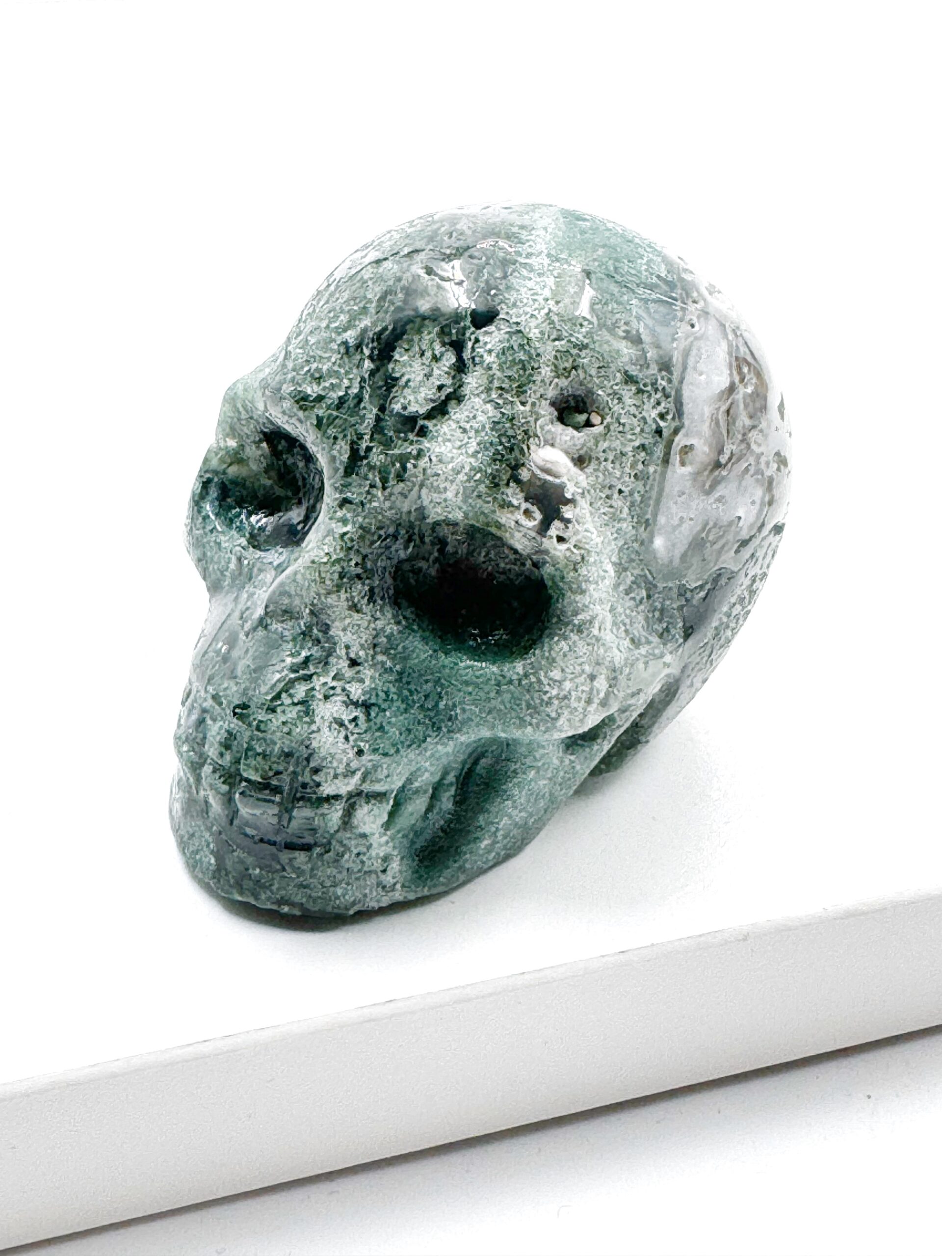 Mos Agaten giver jordforbindelse og knytter dig tættere til naturen og til de energier, der kommer fra jord og planter. Det er en fantastisk krystal at have med sig, når man sår nye frø, både fysisk og i overført forstand. Den styrker nye begyndelser, fjerner blokeringer, og giver vækst i forretninger og personlig udvikling. Den hjælper overtænkende mennesker komme bedre i kontakt med deres følelser og hjælper intuitive mennesker med at se lidt mere praktisk og konkret på energiarbejde.