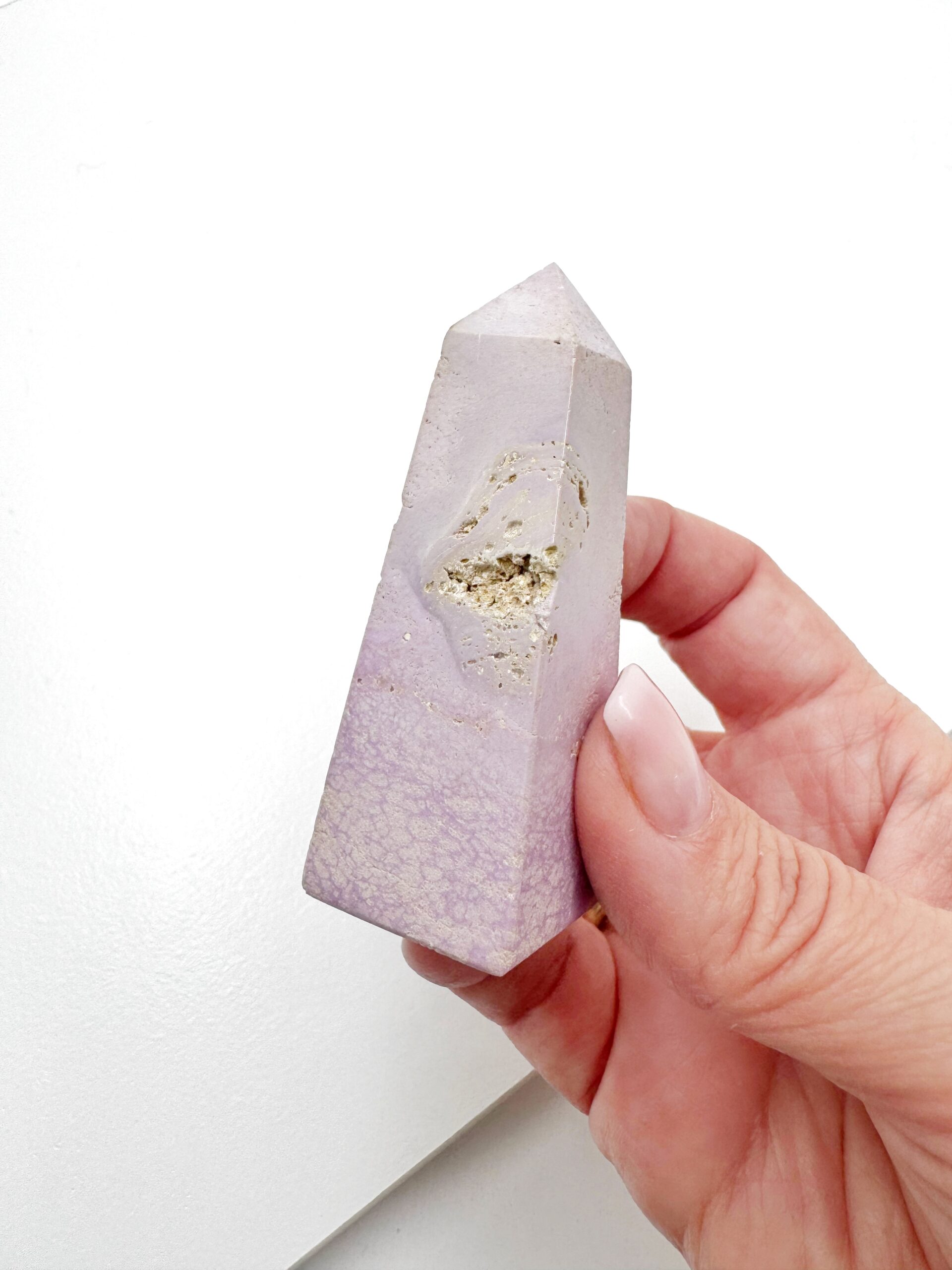 Phosphosiderit er en smuk og blid sten med en dybt beroligende energi, som hjælper dig med at skabe kontakt til dine spirituelle guider. Den åbner dit tredje øje og støtter spirituel vækst og bevidsthed. Under meditation arbejder den især til at åbne en højere vibration i hjertechakraet og bringer en følelse af indre ro, stabilitet og balance. Phosphosiderit fremmer følelsesmæssig healing og hjælper dig med, at forløse stress og gamle mønstre. Den guider dig kærligt mod det, der trænger mest til heling—både fysisk, mentalt og spirituelt —som den derved løfter dine vibrationer med blid styrke og klarhed.