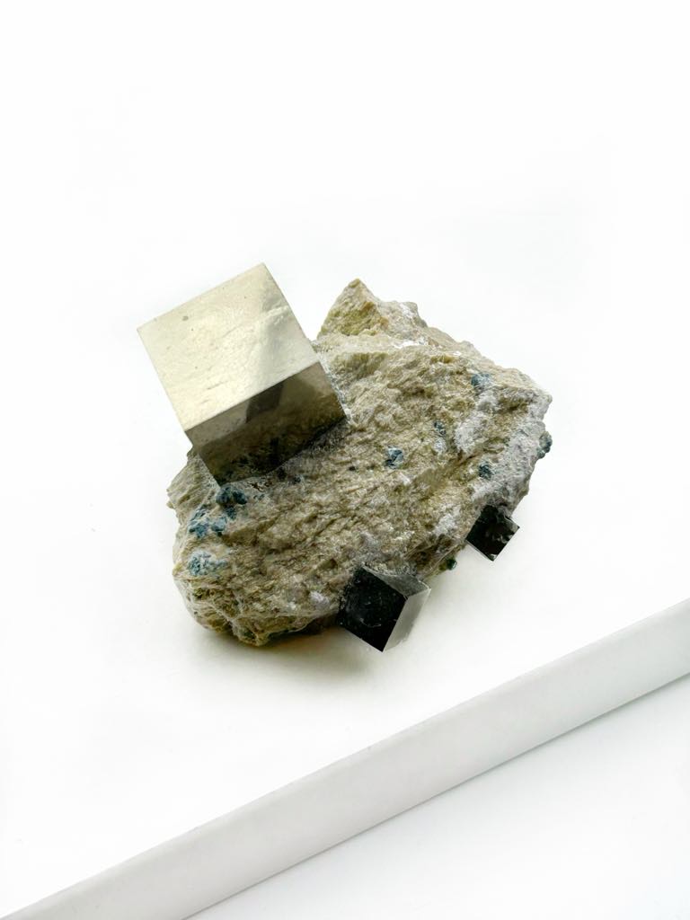 Pyrit er en sulfid, der er et metalbaseret mineral. Det kan minde om guld eller sølv, altefter hvilken variant det er. I gamle dage gik det under navnet Narreguld. Pyrit kan forme sig i nogle meget smukke, kantede strukturer, men kan også bare se ud som en bunke sølvfarvet grus, der er smeltet sammen. Pyrit i den bedste kvalitet danner nærmest kvadratiske sten. Man kan finde det i Frankrig, Italien, Spanien, Japan, Peru, Mexico og visse dele af USA.