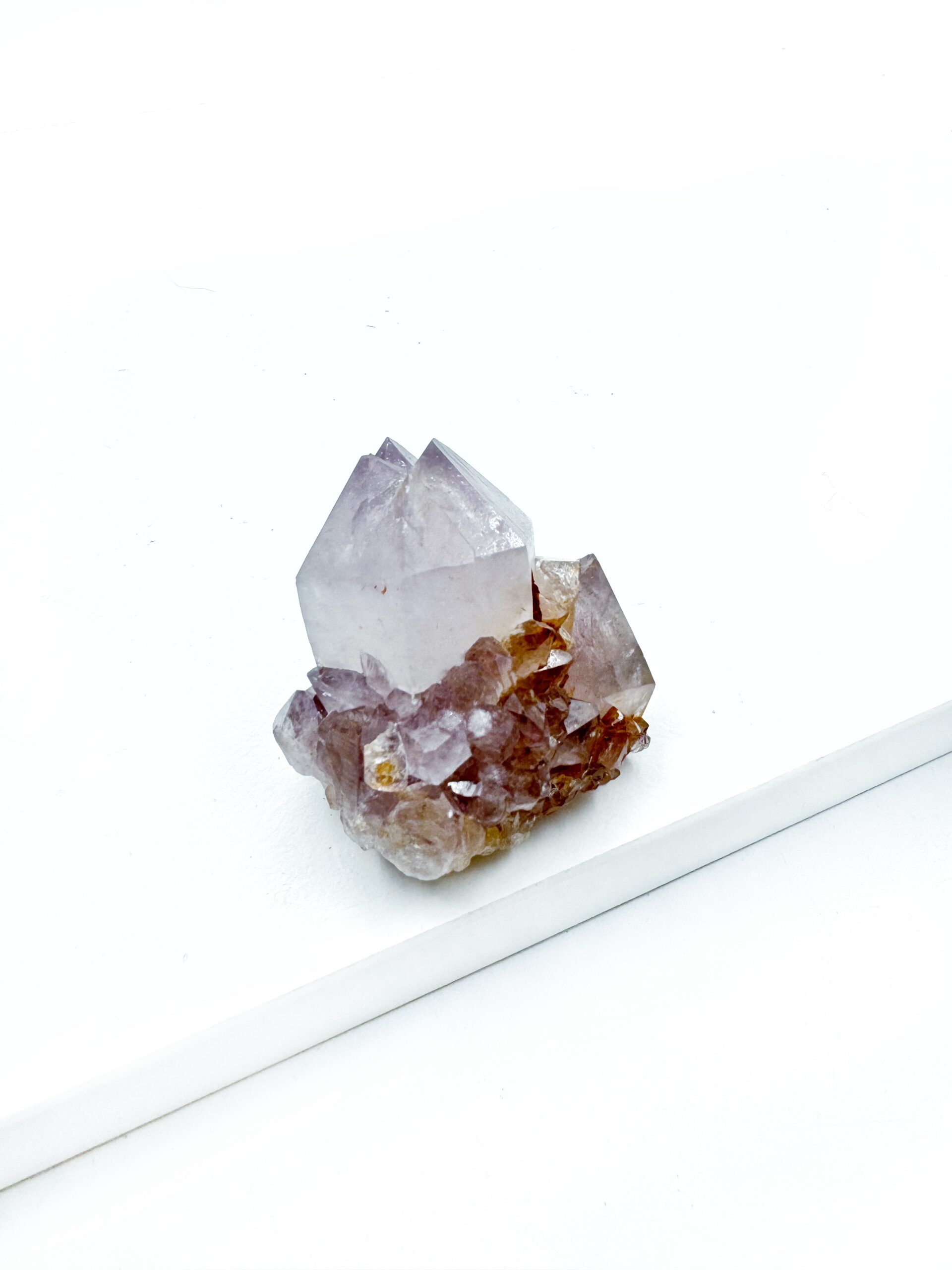 Spirit Ametyst / Kaktus Ametyst / Spirit Kvarts er en unik og spirituelt kraftfuld krystal, kendt for sin klare, violette glød og subtile, næsten lysende energi. Den findes blandt andet i Sydafrika, hvor den ofte dannes i facetterede “cactus”-lignende klynger, omgivet af mindre druser, hvilket gør hver krystal helt unik. Spirit Ametyst betragtes som en af de mest transformative og hjerte-åbnende krystaller i krystalverdenen.
