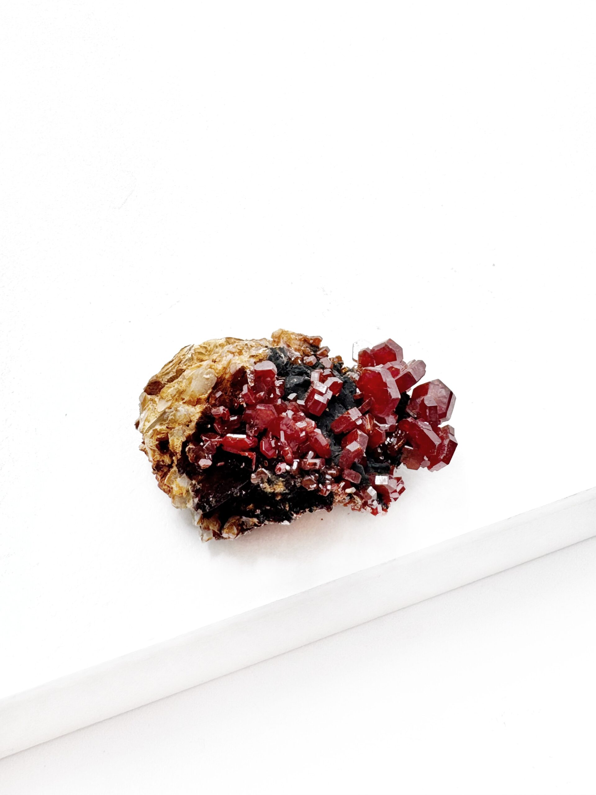 Vanadinit er en krystal, der fremmer mental klarhed, handling og produktivitet. Den er ideel til lange arbejdstimer, studier eller træning, da den aktiverer de nederste tre chakraer og giver fokus og beslutsomhed. Samtidig åbner den tredje øje, hvilket hjælper med at skabe klarhed og tålmodighed under udfordrende opgaver.